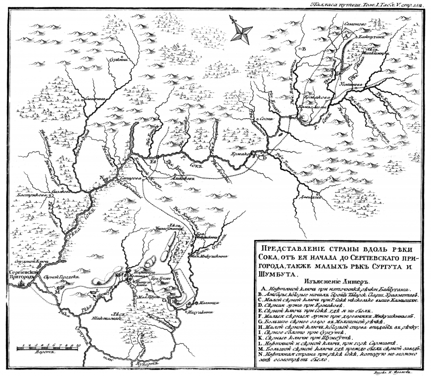Карта из книги "Путешествие по разным провинциям Российского государства" П.С. Палласа. 1773 - 1776