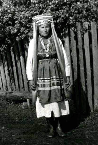 С. Старое Вечканово, Исаклинский район Самарской области. Жительница села в эрзянском национальном костюме. 1984 г. На снимке Елена Киргизова, участница фольклорной группы "Умарина".