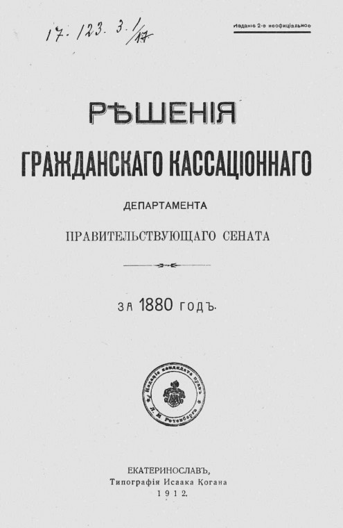 Решение Гражданского кассационного департамента; документ № 223 от 15 октября 1880 года.